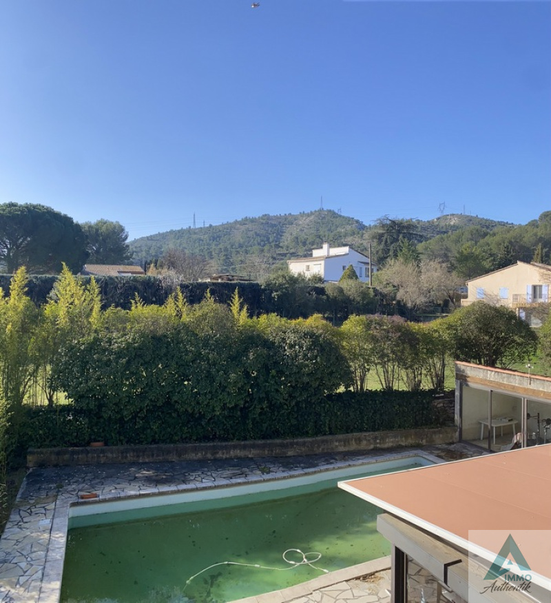 RARE A LA VENTE BELLE PROPRIETE ! l'Agence Authentik Immobilier vous propose cette maison familliale en R+1 d'environ 150m² hors annexes sur 3172m² de terrain environ joliment arboré avec piscine au calme !! Cette maison se compose en rez-de-chaussée d'une vaste entrée desservant une grande pièce à vivre lumineuse avec cheminée à insert ouvrant sur une grande terrasse vue Garlaban, d'une cuisine ouverte, d'un cellier, d'une chambre et d'un wc. A l'étage deux chambres ouvrant sur terrasses privatives, une grande salle de bain (douche et baignoire), une vaste mezzanine, un wc. En sous-sol très grand garage avec wc et douche, En exterieur piscine, cuisine d'été, cabanon et dépendance. BEAUX VOLUMES ! A DECOUVRIR ! Honoraires charge vendeur. CONTACT ESTELLE BARTHELEMY : 06.95.86.71.67 spécialisée sur le secteur d'Auriol, Saint Zacharie, La Bouilladisse, La Destrousse, Peypin, Aubagne, Gémenos, Nans les Pins, Rougiers, Tourves. Les informations sur les risques auxquels ce bien est exposé sont disponibles sur le site Géorisques.